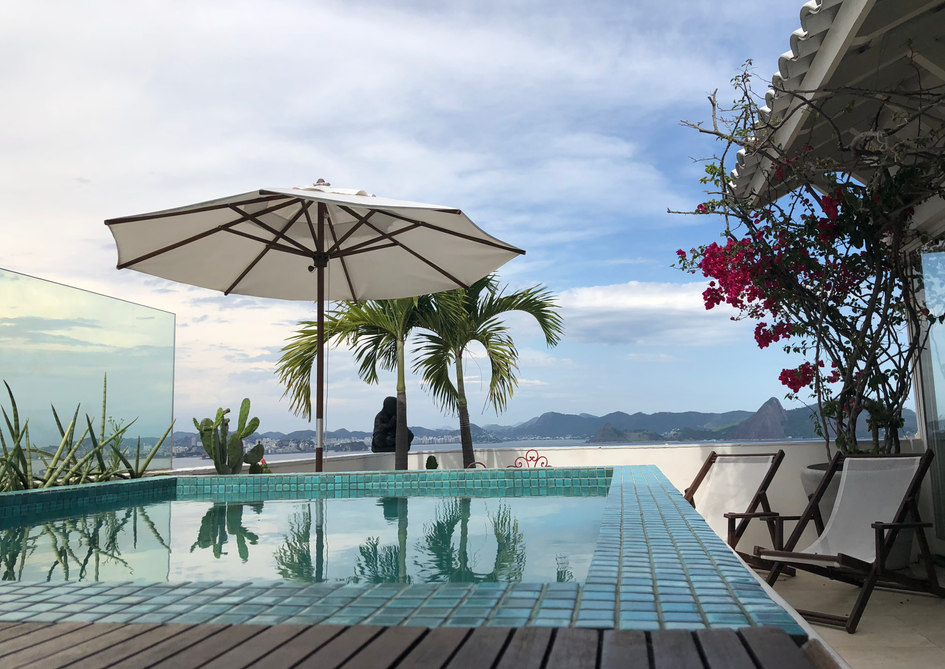 It's a 140 sqm loft with a stunning 180° view of Sugarloaf, Guanabara Bay, Niterói, the Bridge, Downtown, and Santa Teresa.